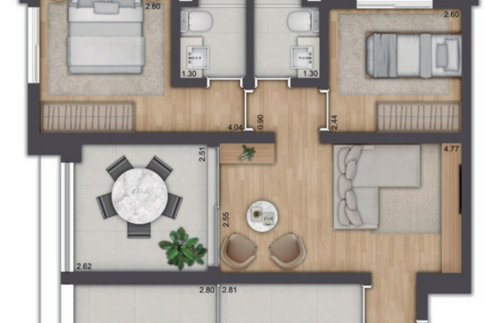 O conceito do empreendimento está alinhado ao estilo de vida urbano contemporâneo, combinando unidades compactas e plantas mais amplas para atender diferentes perfis de moradores e investidores. A arquitetura privilegia linhas atuais e soluções funcionais de planta, buscando otimizar iluminação natural, ventilação e integração entre os ambientes. As áreas comuns foram pensadas para oferecer conveniência e lazer dentro do próprio condomínio, criando uma estrutura completa para o dia a dia dos moradores.
